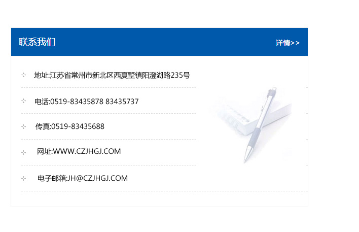 地址:常州市新北區友邦商務大廈1幢16、17層  電話:0519-85101652  傳真:0519-85112595  郵編:213022  網址:www_cz-jiayue_cn.zbruigu.com  郵箱:xiajifengaa@163.com